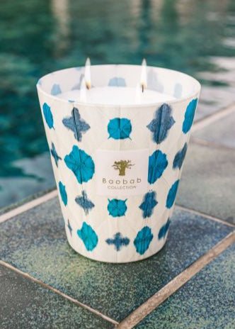 La bougie parfumée Ulysse est réalisée dans un verre décoré d’une sublimation aux motifs bleu et turquoise. Le verre laisse transparaître la flamme tel de l’albâtre, donnant un effet raffiné et mystérieux.